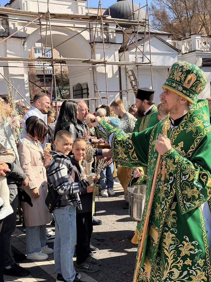 По завершенні Літургії Його Високопреосвященство окропив гілля верби та присутніх освяченою водою.
